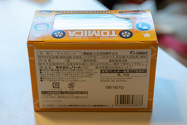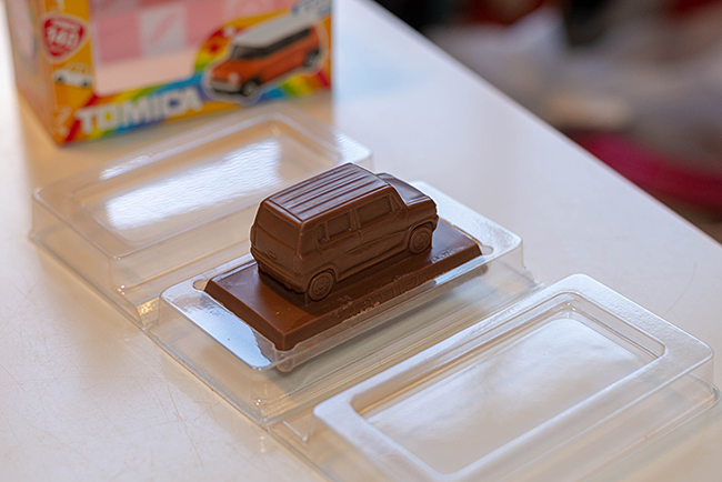 ミニカーのトミカシリーズを販売するタカラトミーとハートチョコのコラボ商品です。