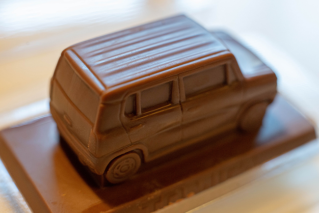チョコのブロックから3D彫刻機みたいので削り出してるんでしょうかね?