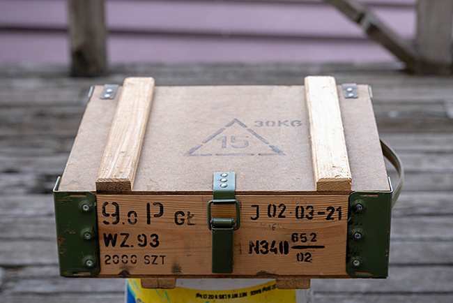 青空カフェセットはポーランド軍の木製アンモボックスを使ってます。機関銃の弾を入れるケースではないかと思いますが、手頃な大きさと丈夫さでハスラー君のラゲッジにも丁度よいサイズです。