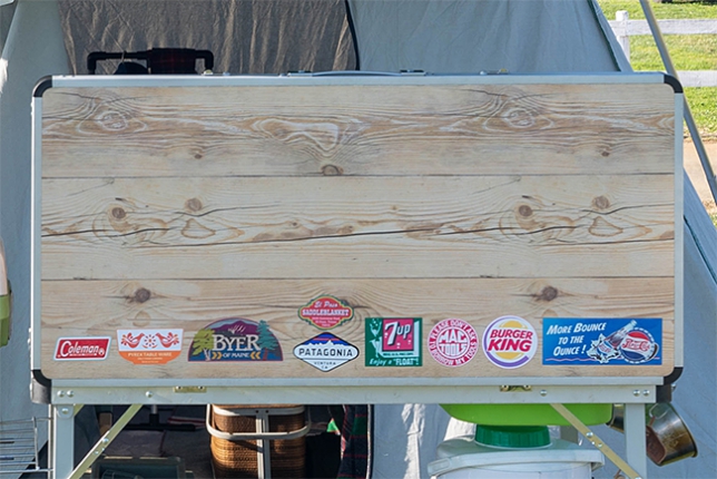 そして今回はステッカーです。自分はステッカーを貼るほうでは無いんですが、唯一このキッチンテーブルの背面にだけステッカーを貼ってます。
