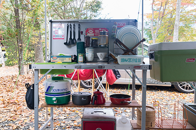 冒頭の写真は最近のアウトドアキッチンなのですが、キッチンテーブルもUS.Coleman製なのにColemanを主張してないんです。