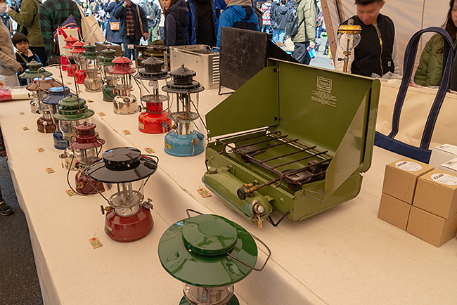 ヴィンテージなランタンやストーブが展示、販売されてました。中にはかなりレアなストーブも有りましたよ!