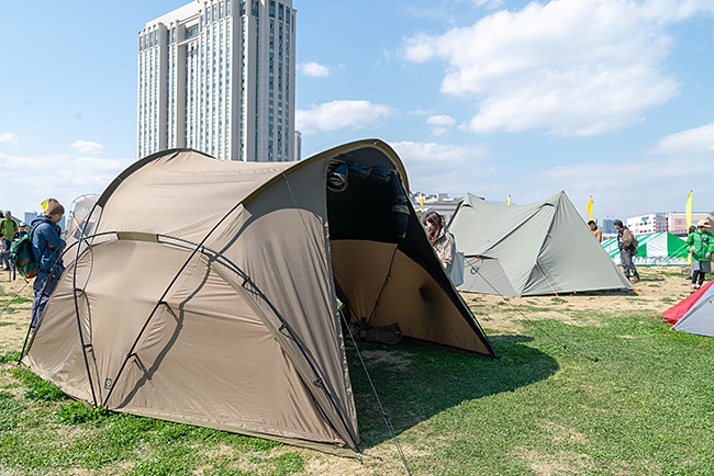 テントの展示はどれも中に入れたので気になるテントがあれば素材感とかチェックできたと思いますよ。