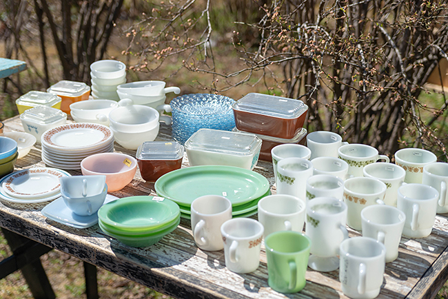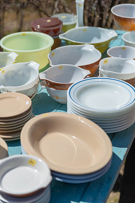 Pyrexは手頃な値札が付いてましたよ。こういう蚤の市では複数購入で値引き交渉してみるのも有効なので是非!