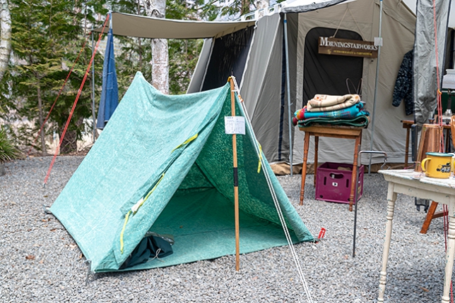 BAP TENTという商品名でいわゆる軍モノのバップテントとは別物でしょうけど、木製フレームで未使用品「こんな価格でイイんか!」 というような価格でSOLDとなってました。