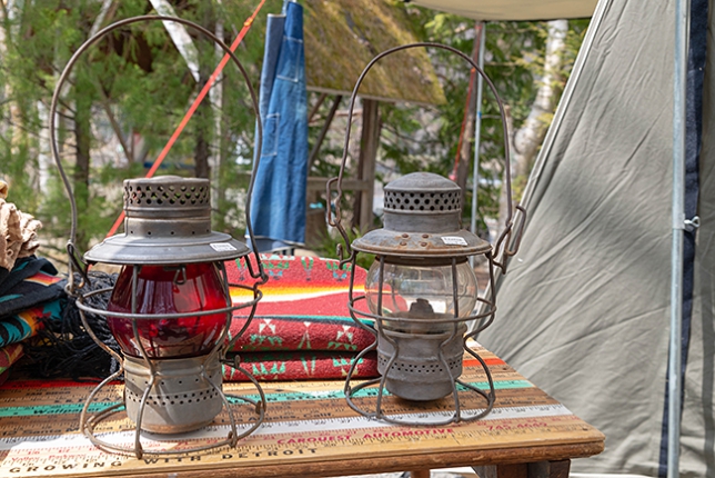 今流行のレイルロードランプです。赤いグローブは信号灯ですね。これらは3月にあったアウトドアウィークエンドで売られていたレイルロードランプの半額くらいでした。