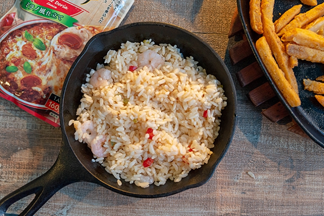 スキレットで作ったミラノ風ドリアはいつまでもアツアツのままでした。