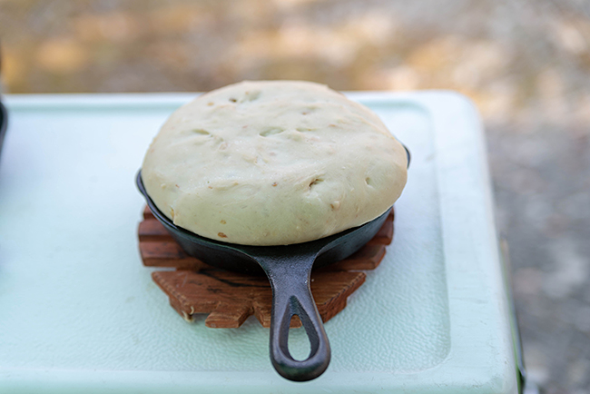 近くに張られたテントの方がキャンプオーブンを使うためにツーバーナー425Bを購入されたようなので焼こうか迷っていたクルミ入りのパンを焼くことにしました。