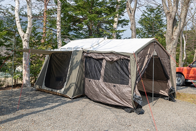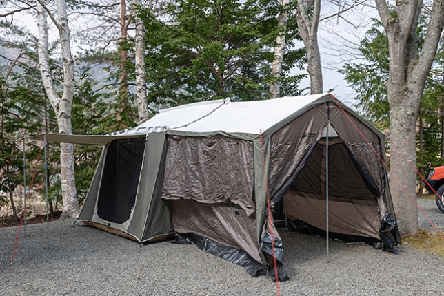 なかでも今回の目玉商品はKODIAK CANVAS(コディアックキャンバス) の12 x 9 ft. Cabin Tent with Deluxe Awningというテントです。(詳細)