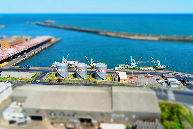 展望階といってもそんな高いわけでも無いのでこんな景観なんですね。せっかくなのでミニチュア風に! 1週間前の天気予報では雨予報でしたが、好天に変わりました。