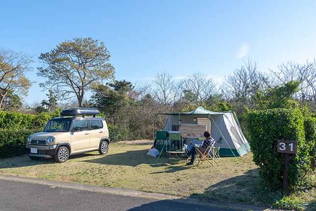 今回利用させていただいたのはオートキャンプサイトの31番 10m×10mの面積でAC電源付きですが、電源は使いませんでした。10m×10mって広いですね。ハスラー君だと特にスペースを持て余してしまいます。