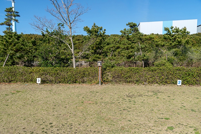 キャンプ場から直ぐの所に風力発電の風車が有るということは風が強いんではないかと思ったのですが、区画の堺にある垣根だけでけっこう風が和らいでました。因みにキャンプサイトから海方向の眺望は工場が見えます(汗 此処から海原が見えちゃったりしたら津波が来たり、強風だったりと弊害が多いでしょうね。