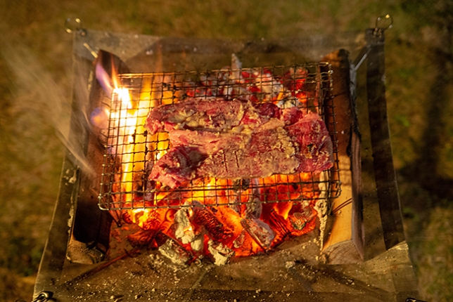今回の夕飯は原点回帰的な感じです。薪で熾火にして焼くステーキが凄く美味しいというのをテレビで見ましたが、これだったら薪でも良かったですね。