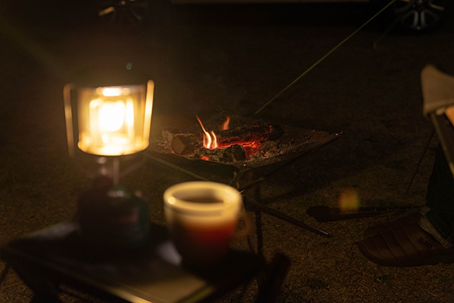 夕食後は焚火で温まって寝ることにします。夜は曇ってしまい夜景も今ひとつでした。