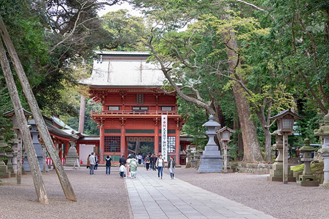 大鳥居をくぐって日本三大楼門の一つらしい楼門です。
