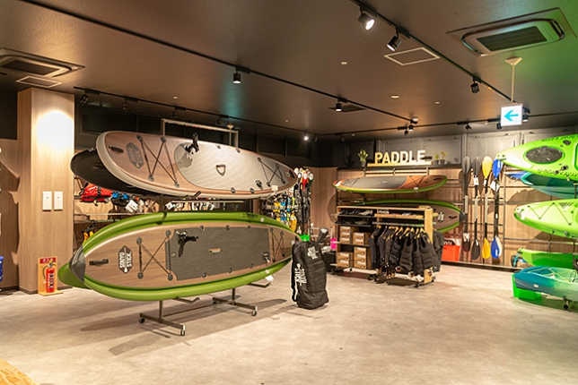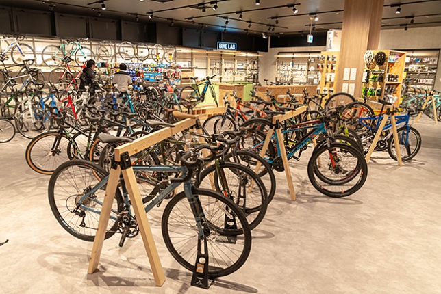 2階はアウトドアウエアやバッグ、ウオータースポーツ、BIKE(自転車)がメインでしょうか。