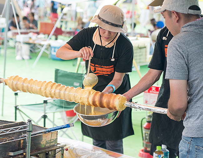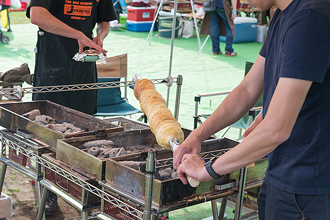 色々なワークショップが有りましたが、ジャパンBBQカレッジさんの炭火焼バウムクーヘンデモンストレーションが一番大変そうでした。
