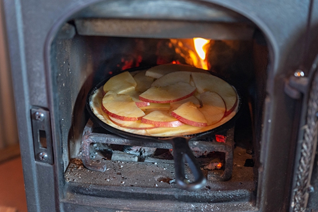薪ストーブでのオーブン料理は初めてですがなんとか焼くことができました。