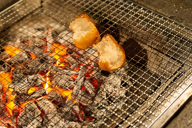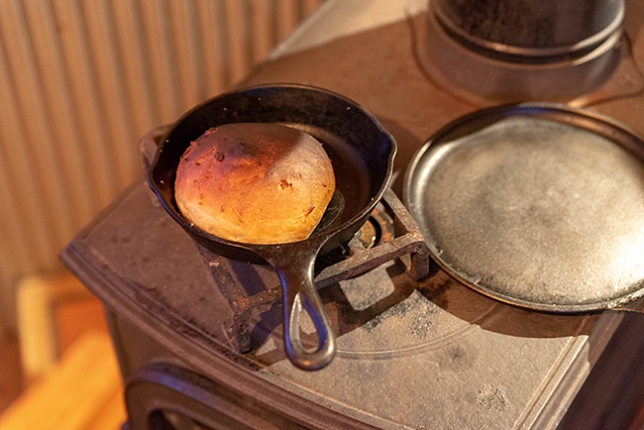 このパンは初日の夕食で炭火で軽くトーストしながら食べましたが、食べた感じは薪ストーブで焼いた方は廻りが固く焼けている以外に味の違いは分かりませんでした(笑