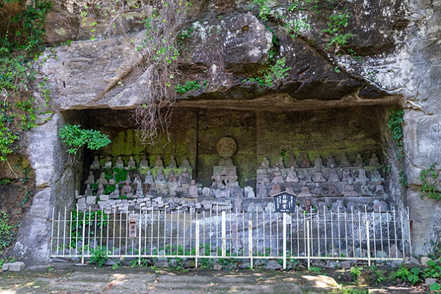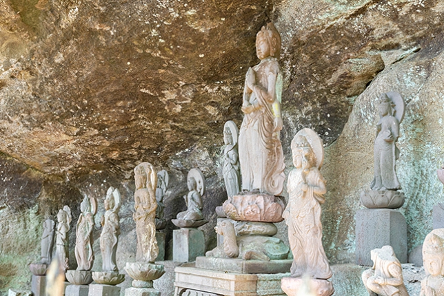 このように岩場の採石跡の凹んだ箇所にいくつもの仏像が置かれてます。