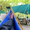 ハンモックから見える景色も綺麗です。新緑のこの時期は良いですね。