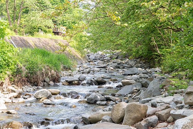 川のせせらぎもいつもどおり。