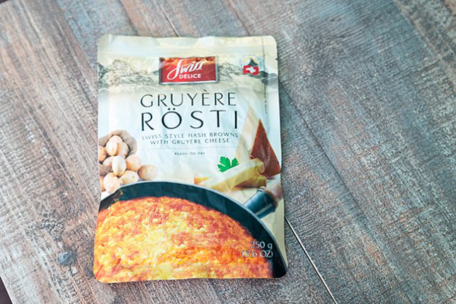 商品パッケージにあるようにスイスのポテト料理(焼きハッシュドポテト)です。コストコでは500gのパッケージが3個で899円とかで売られてます。最近はスーパーでも250g入りが300円くらいで見かけるようになりました。