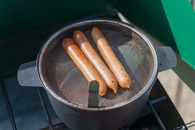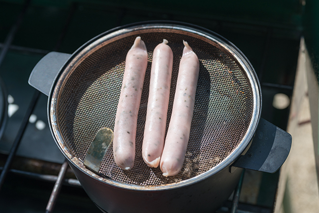 ハーブ入りのソーセージというのはその風味を殺さない為にボイルドソーセージが多いですが、軽く燻製してみます。