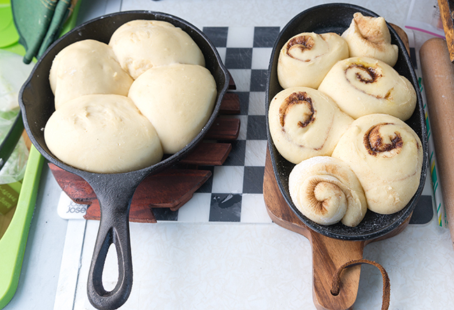 今回はホワイトデーも近いということもあり、久しぶりにパンを焼きました。シナモンロールとスキレットを使ったオニオンベーコンブレッドです。