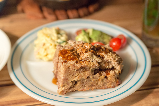 夕食はゆで卵入りのミートローフをメインに