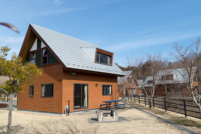 こうして見ると住宅展示場のようにも見えるほど、コテージが新しくて綺麗です。