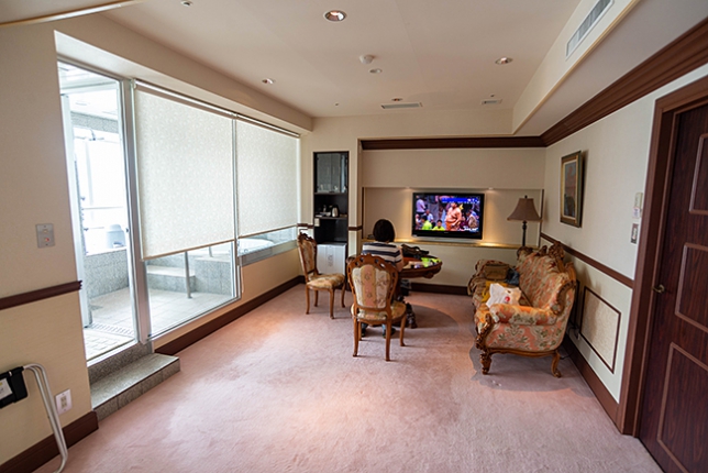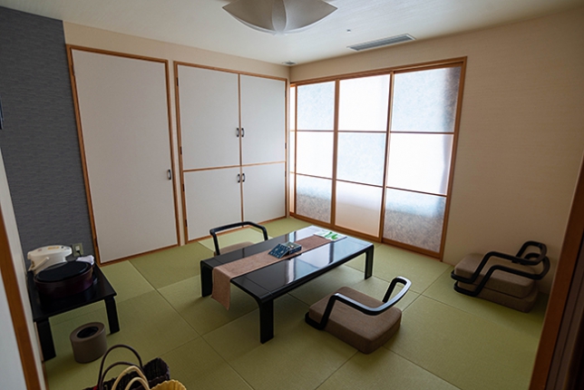 案内されたお部屋はリビング付きの和洋室、寝室はベッドのお部屋でした。温泉街の観光ホテルとは思えないお部屋です(笑