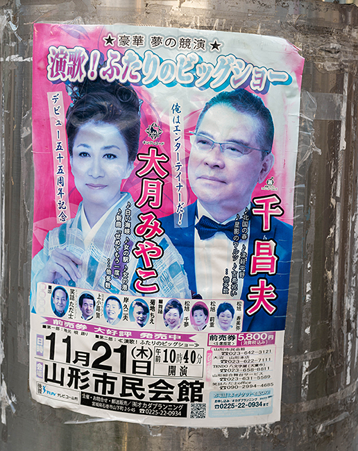 駅前もちょっと寂しい感じです。唯一気になったのが千昌夫さんと大月みやこさんの演歌!ふたりのビッグショーのポスター(笑 東北で頑張っておられるんですね