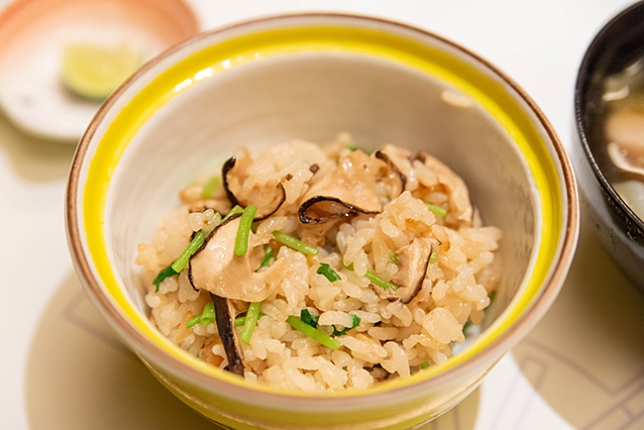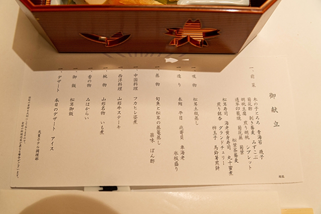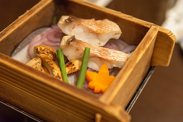 真鯛と松茸の蒸篭蒸し。写真有りませんが松茸の土瓶蒸しもあります。