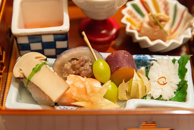 前菜は丁寧に調理された料理が並びます。松茸料理が多く、「松茸のにぎり」なんて初めてでした。