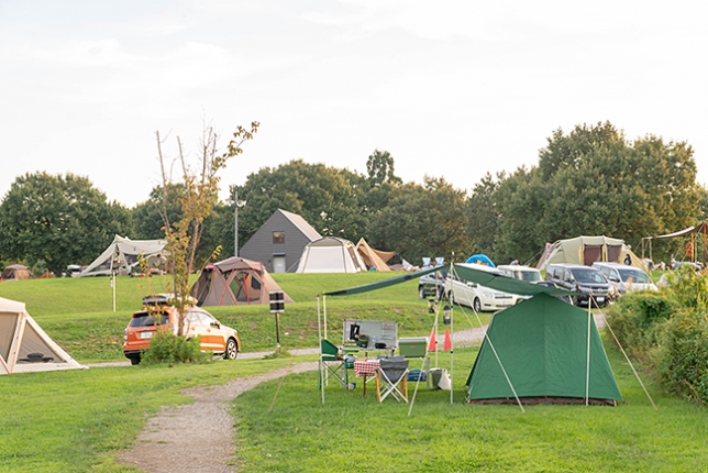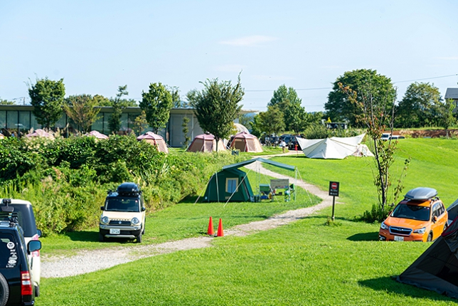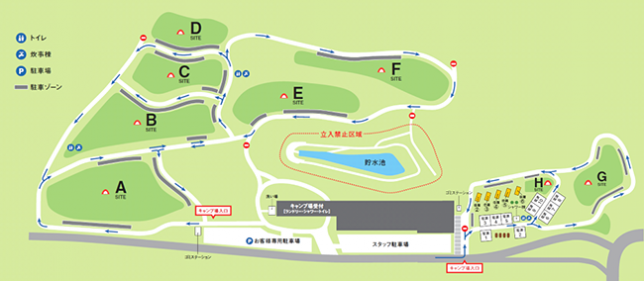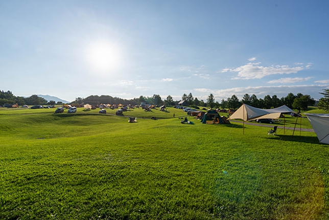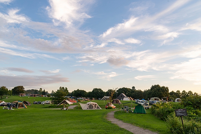 言わずと知れたスノーピークの聖地、本社併設のキャンプ場です。このキャンプ場とされている土地は元々は牧場だったそうで広大な広さのわりに平坦な個所が少ないんです。ゴルフ場かとも思いましたが牧場なんですね。利用料はレギュラーシーズンなら大人1名1,500円(税込み)のみでJAFの会員なら合計から10%オフとリーズナブルな料金です。