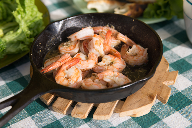 朝食は何故か夕食のような献立のローストポークや海老のアヒージョ。