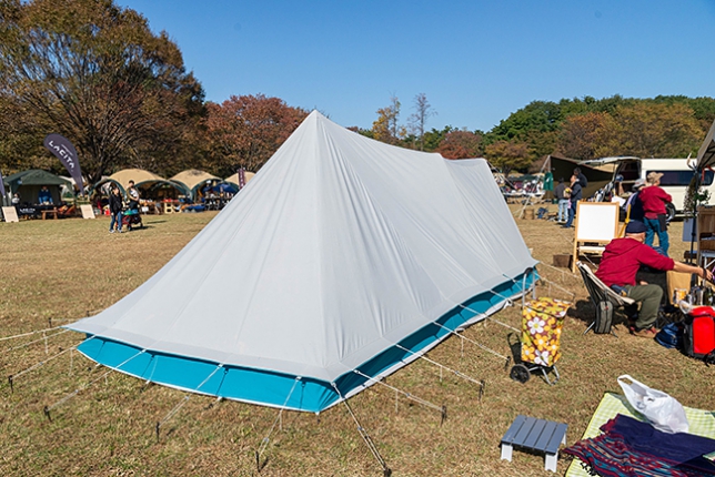 TVチャンピオンでキャンプ王になられた方のテントの展示というのが有りました。このオランダのDewaardalbatrosというテント、ペグが47本必要という話を聞いてまず無理だなと思いました(笑 A型テントで前室がわりと広くて更にオーニング部分もかなり広いです。