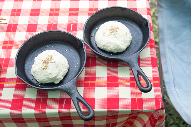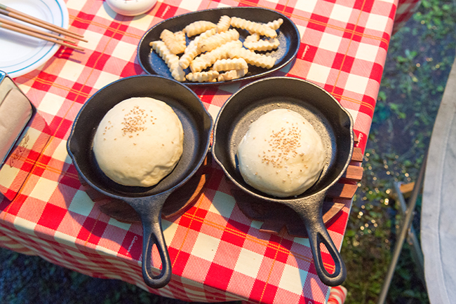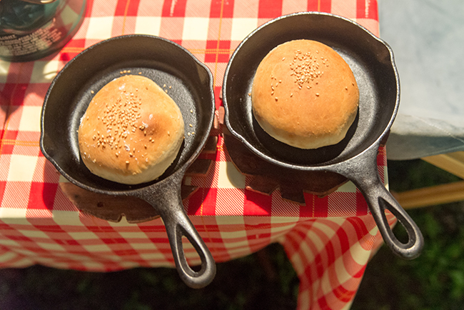 6.5インチスキレットを型にしてバンズを作っていきます。