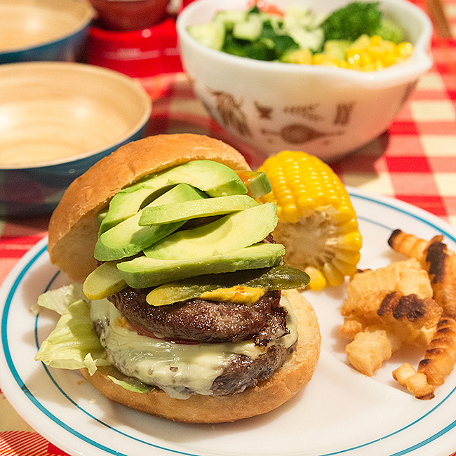 ビールに合わせるべく、アボカド チーズ Wハンバーガーのレシピです。