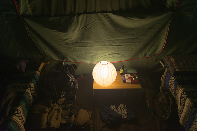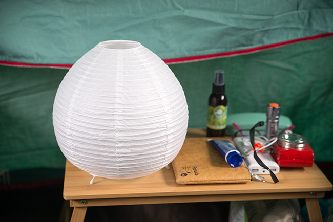 今回、テント内の照明には和紙シェードランプBONBORIを使いました。