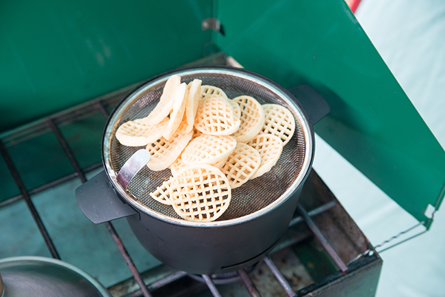 熱燻することで温かくなるのもポイントです。厚切りポテトチップの燻製最高素材と断言しちゃいます。