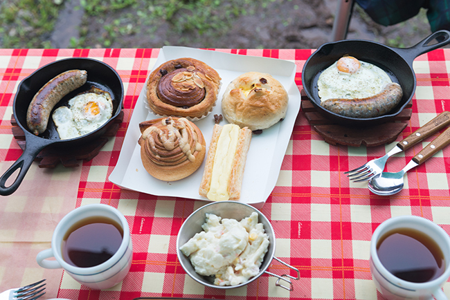 朝食は道の駅 田園プラザかわば で購入した惣菜パンとソーセージエッグ