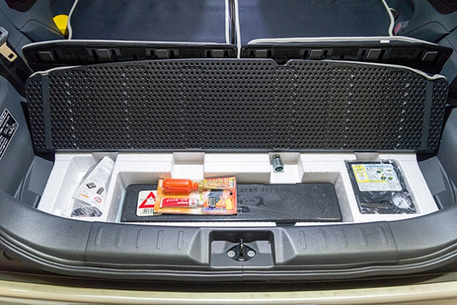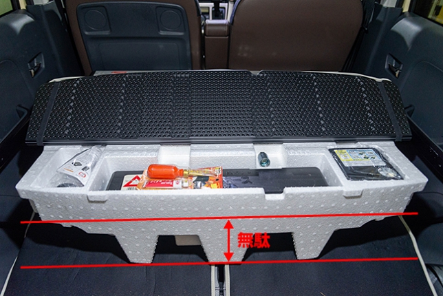 今のハスラー君にはこの部分は工具入れとなってまして、この発泡スチロールを外してみると