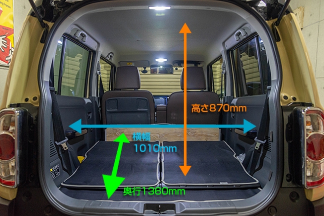 ハスラーでキャンプに行く場合、4名乗車の場合はラゲッジスペースがかなり縮小されてしまいますが、2名乗車で後席を倒した状態にすると