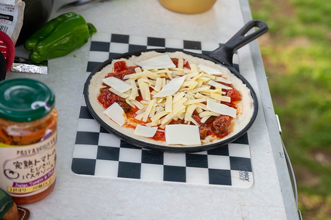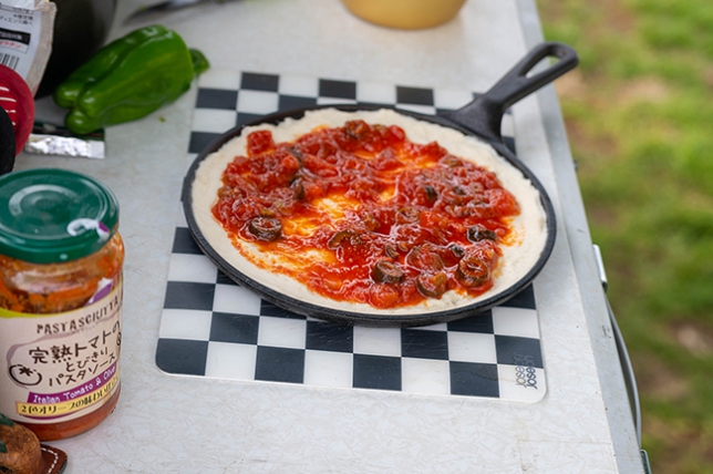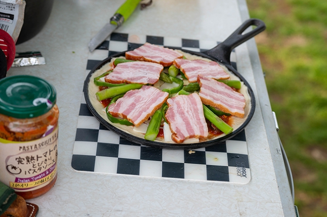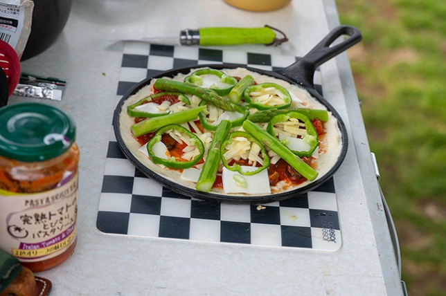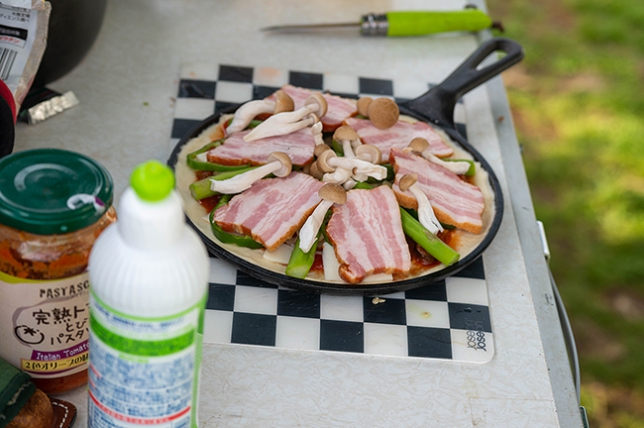 キャンプに限らず、生地から作ってピザを焼くなんて時はこんな好きな具材を載せて作るミックスピザが多いんではないかと思います。