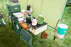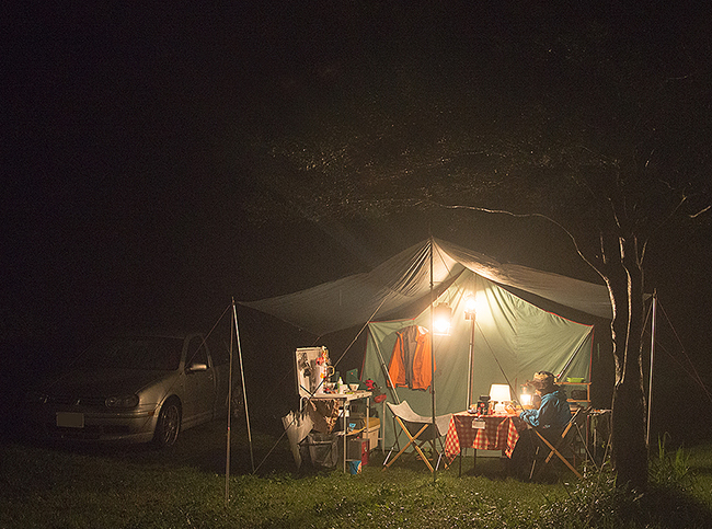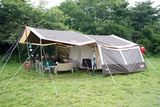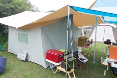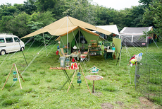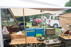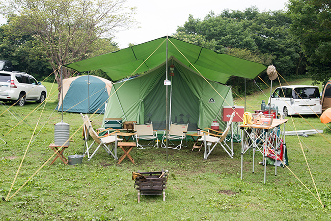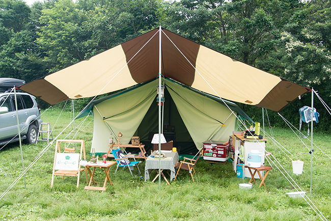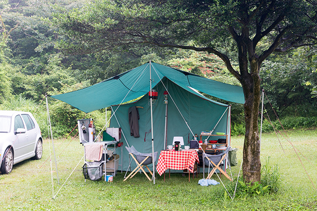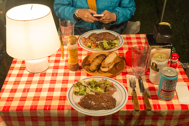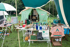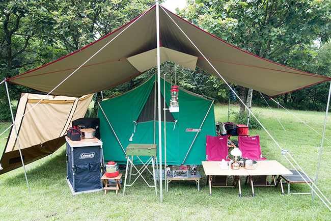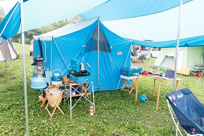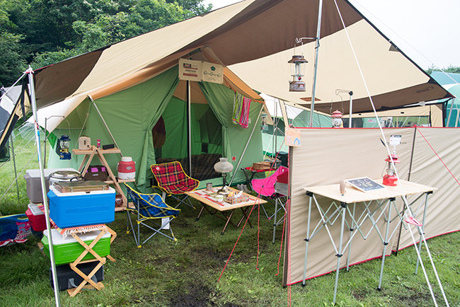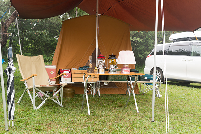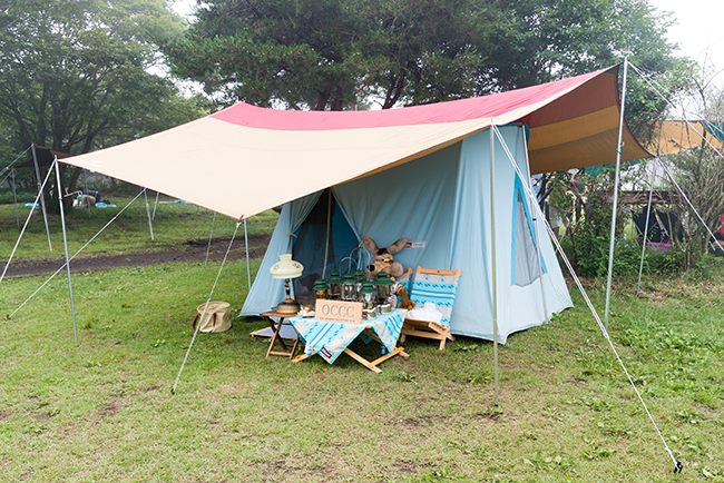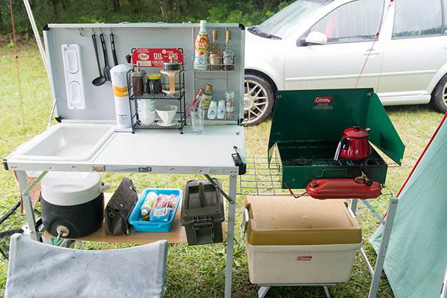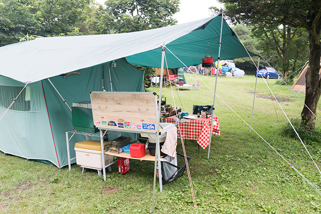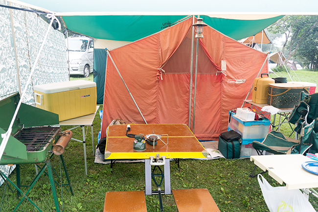 今回はキッチンテーブルを2台使って、アメリカンダイナーならぬアウトドア ダイナーをテーマにサイトを作ってみました。