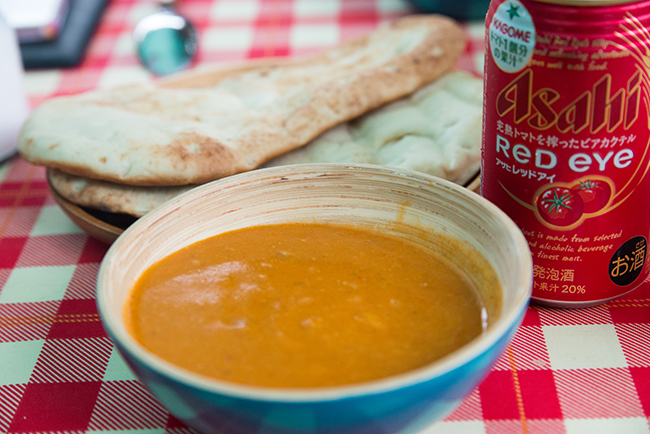 夕食はバターチキンカレーとナン