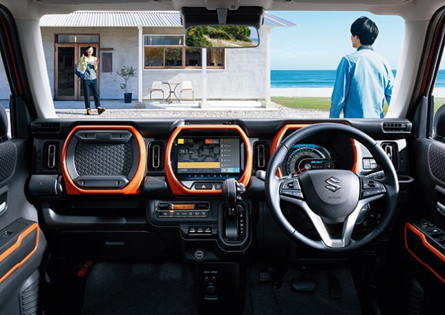 新型ハスラーのインテリアは好みが分かれるところでしょうね。軽自動車だからこのくらいのアソビが有っても良いとは思いますが、長く所有することを考えたら普通な感じのほうが良さそうにも思います。運転席側の仕舞えないドリンクホルダーが気になります(笑 上位グレードは液晶に描写するCGメーターなのかな?