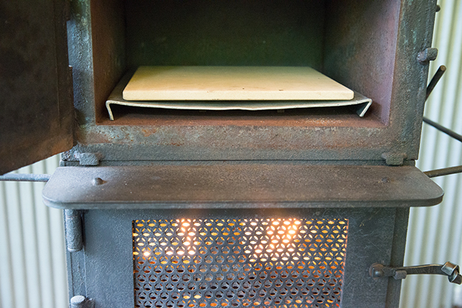 e-oven(薪ストーブオーブン)でピザを焼きます。